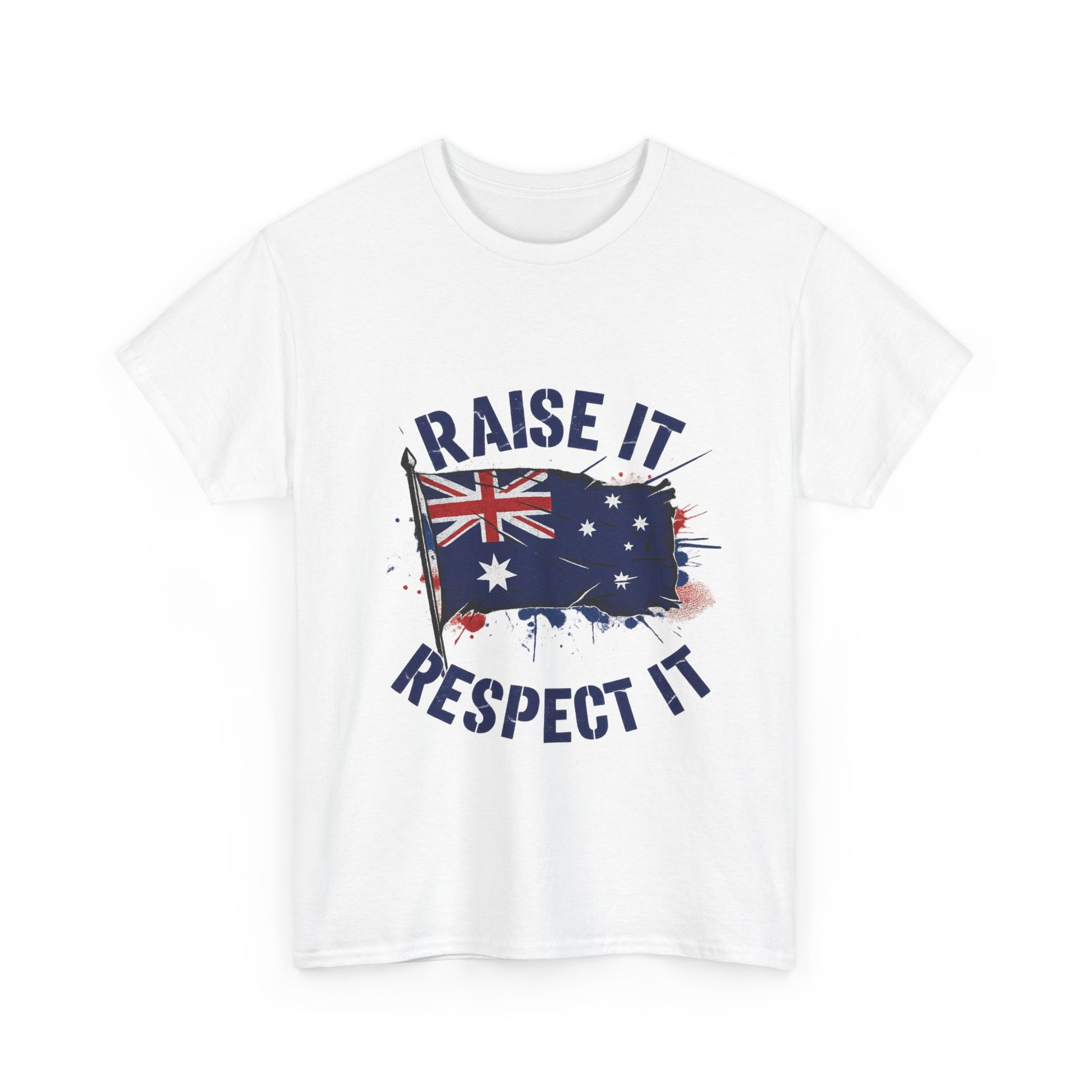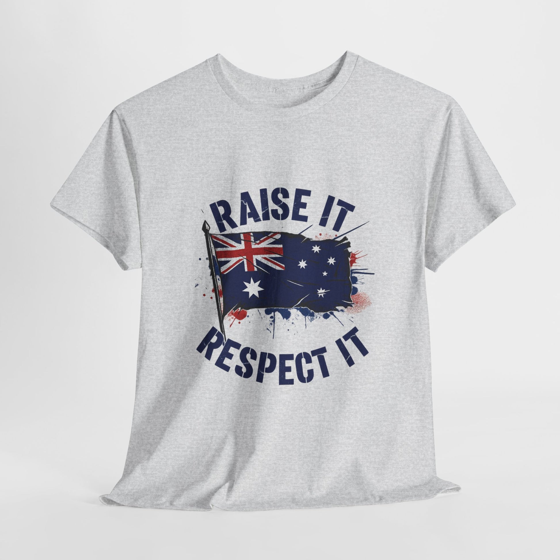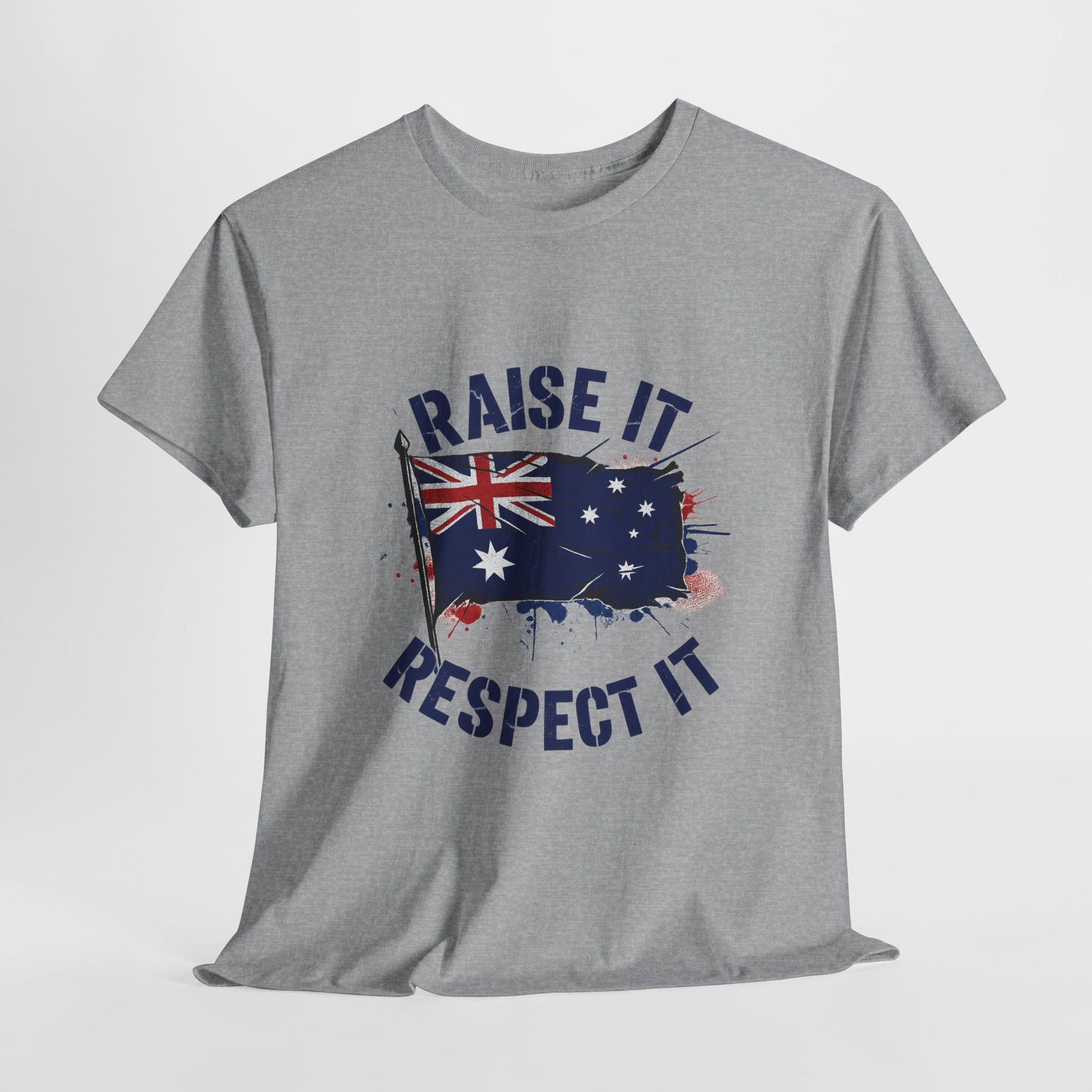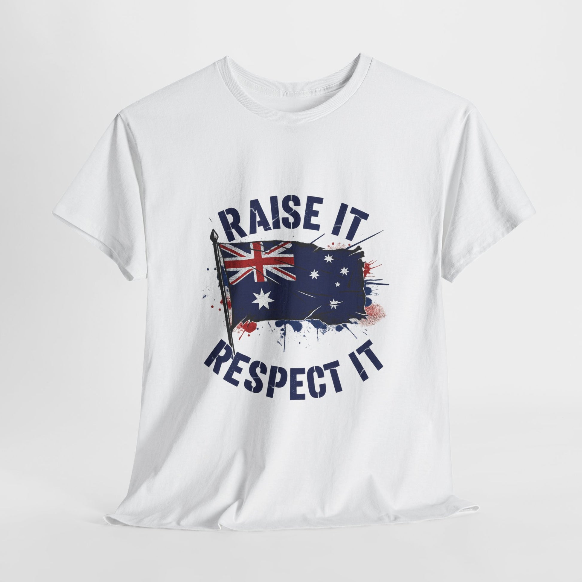 - High-impact graphic print — “Raise It, Respect It” message paired with the Australian flag, printed to resist cracking and fading