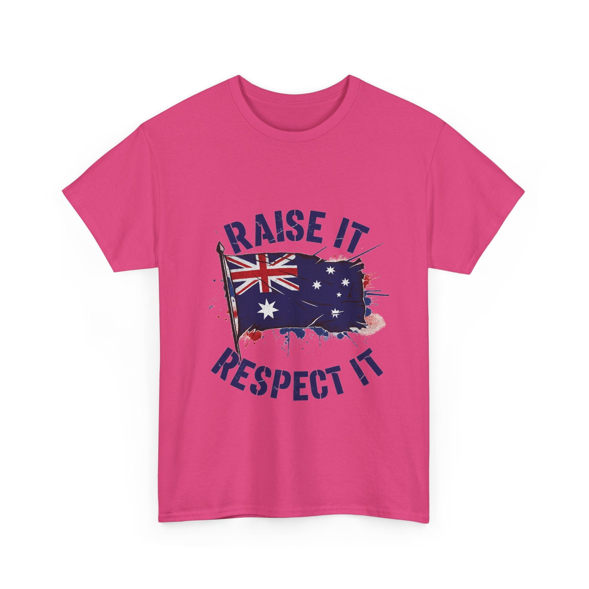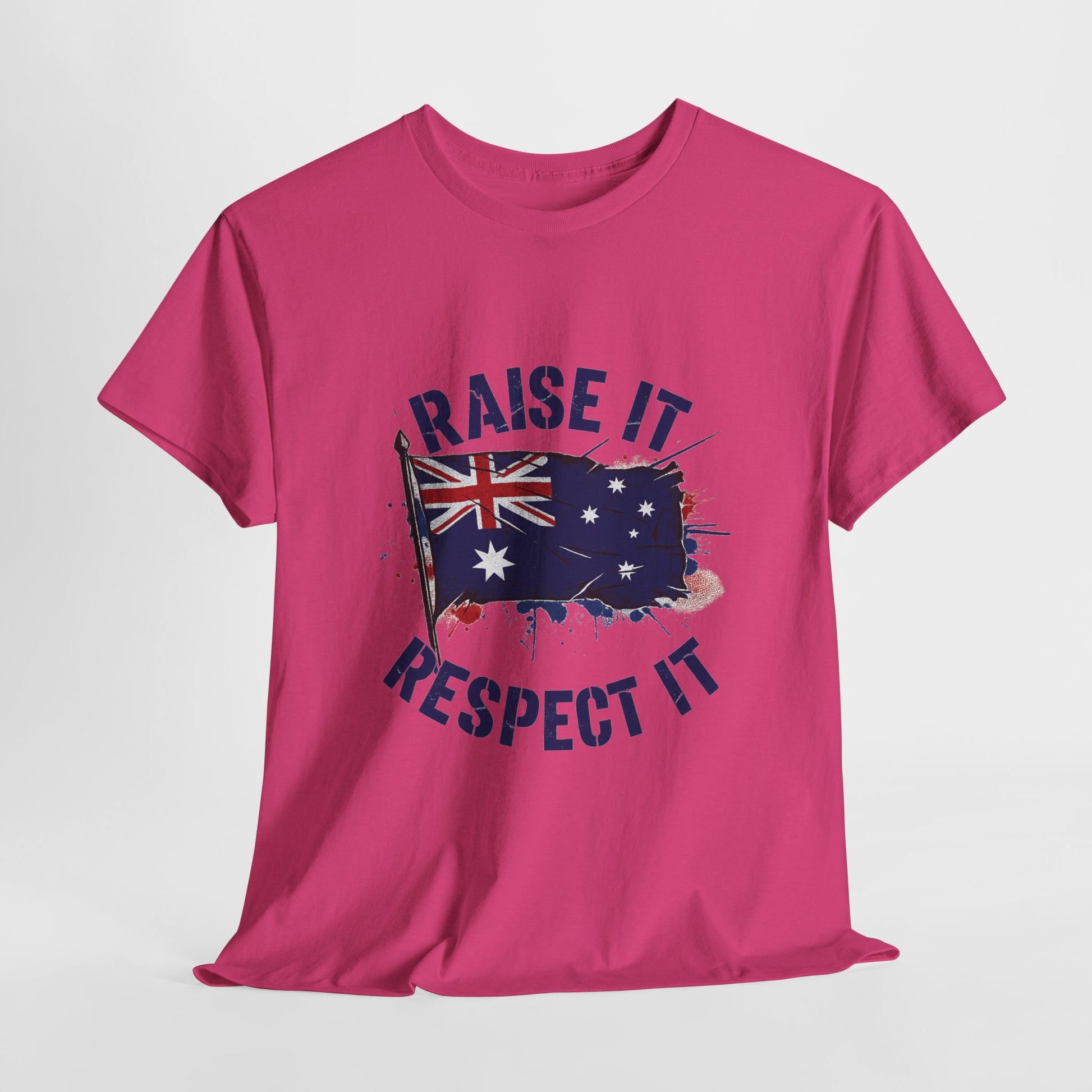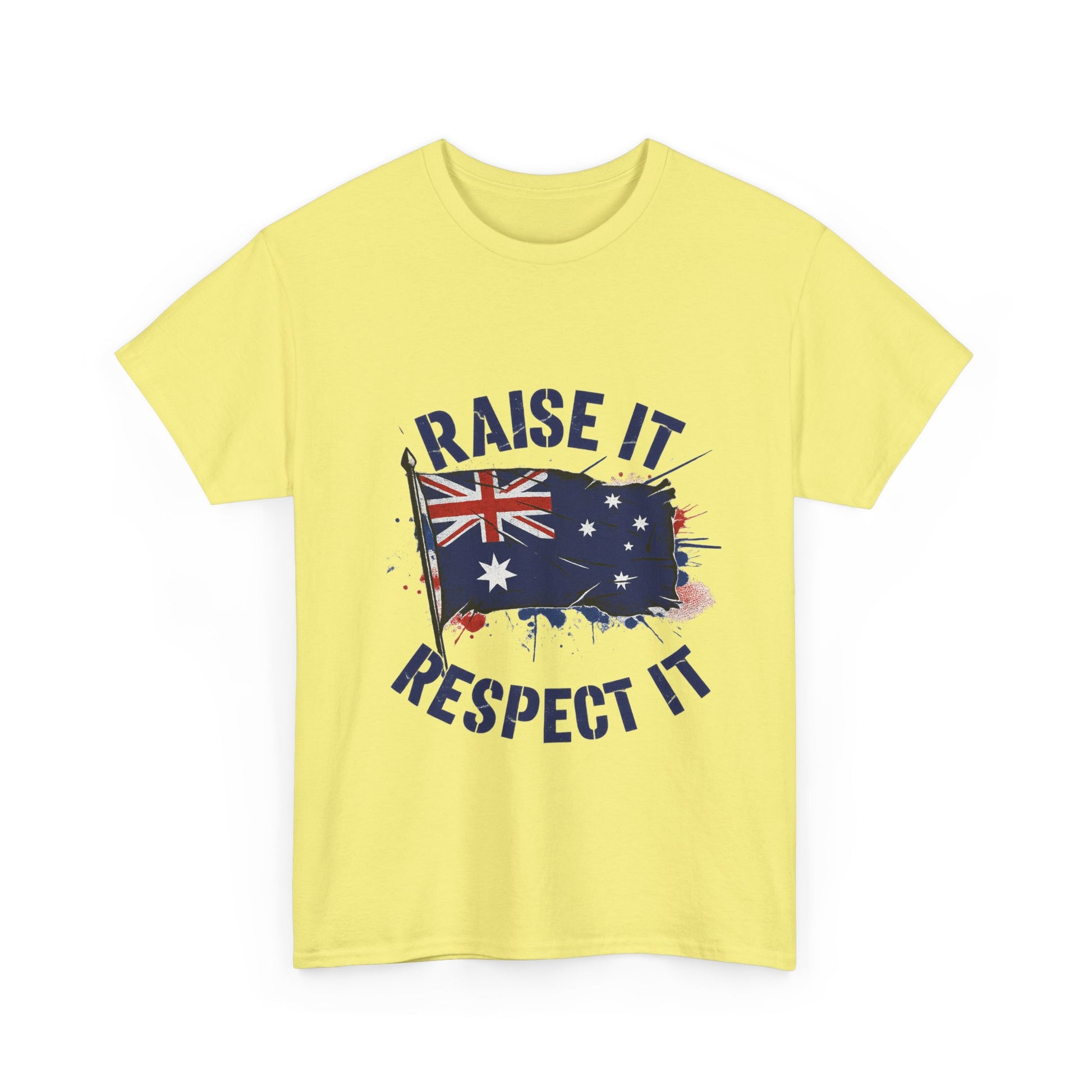 - High-impact graphic print — “Raise It, Respect It” message paired with the Australian flag, printed to resist cracking and fading
