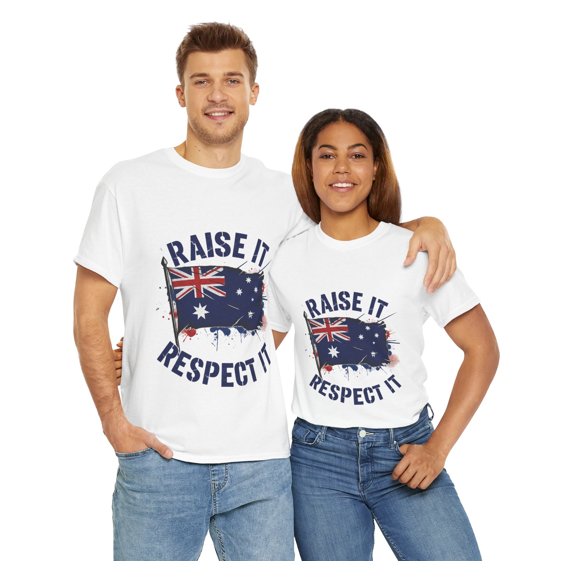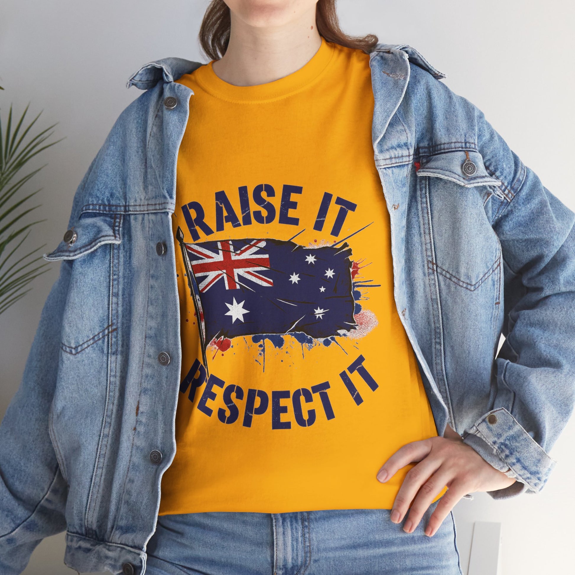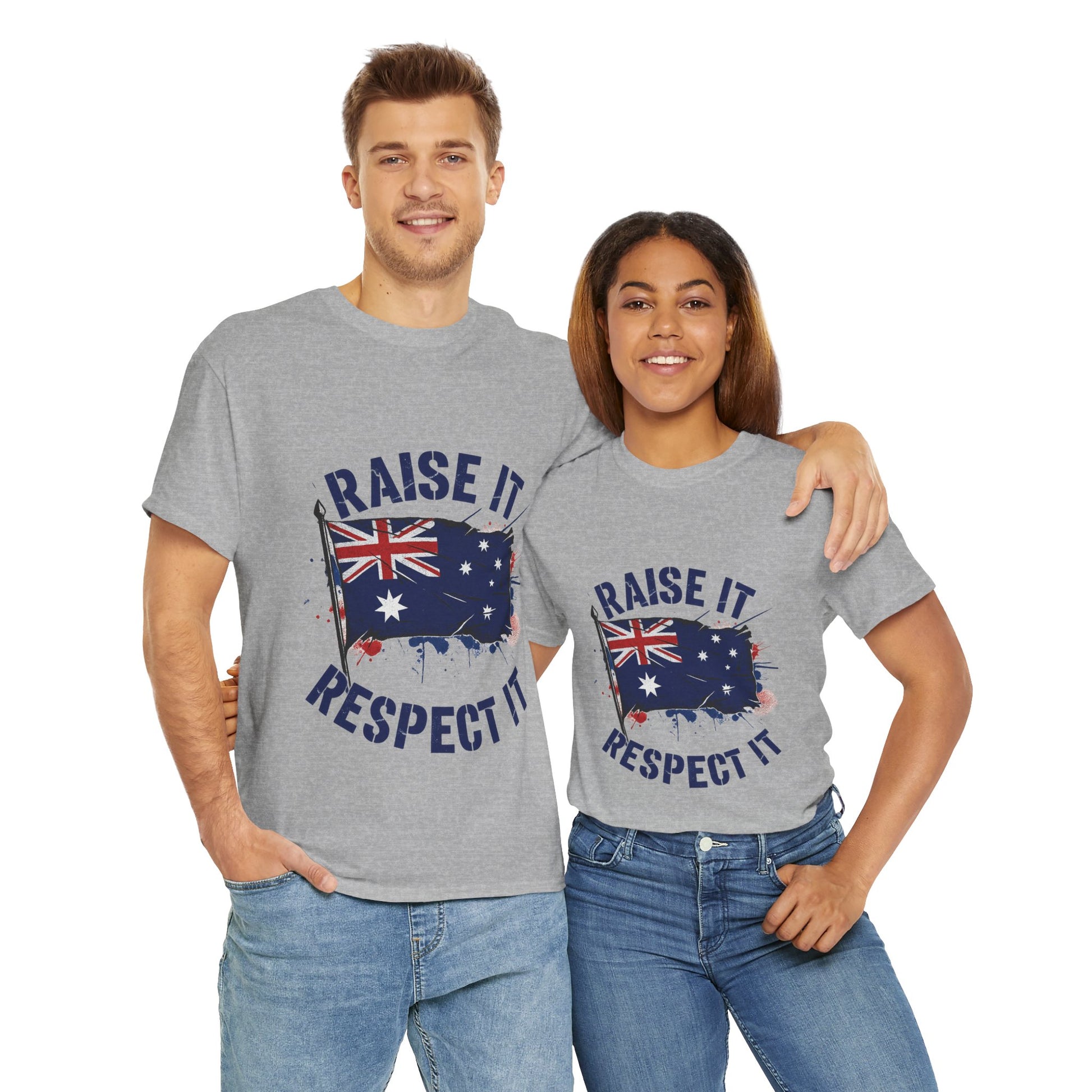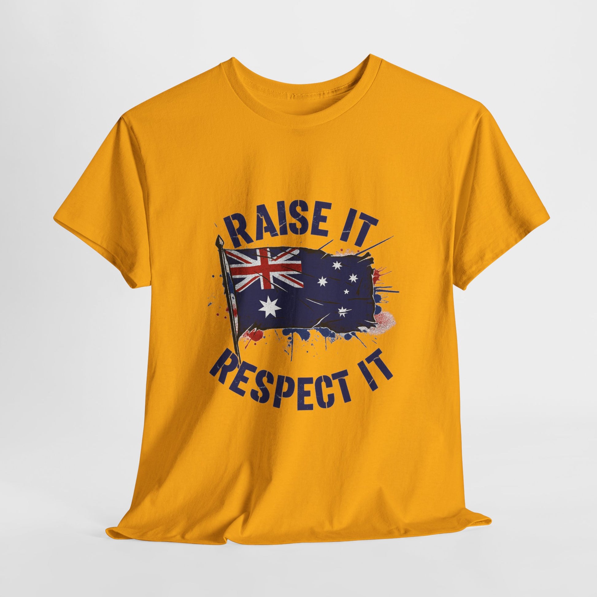 - High-impact graphic print — “Raise It, Respect It” message paired with the Australian flag, printed to resist cracking and fading